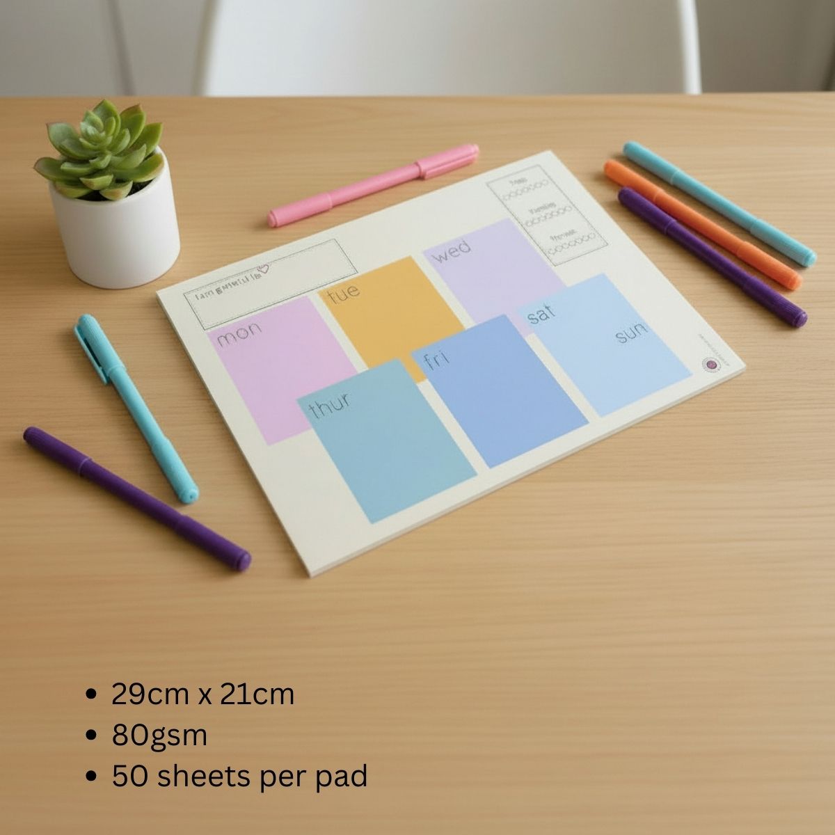 Plan ahead and organise your 'Weekly Schedule & To Do List' in our bright ‘Happy Blocks’ notepad. Simply tear off a sheet and place it on your fridge or pin board, to help you stay organised. Write out your tasks and lists' and tick them off when done....A Stationery lovers delight!